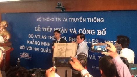 13日、ハノイで、情報通信省はアトラス世界地図帳ブリュッセル1827年版の受領式を行いました。この世界地図帳はフランスの有名な地質学者フィリッ プ・ファンデルマーレンが製作したもので、1827年に、出版され、ホアンサとチュオンサ両群島に対するベトナムの争う余地のない主権を立証しています。