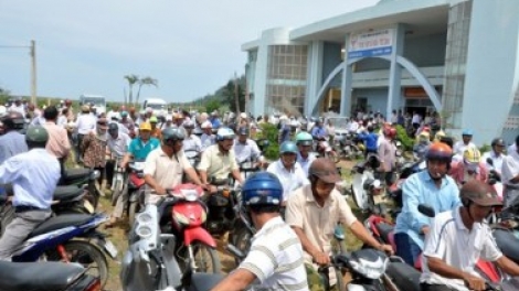 9日、中部クアンガイ省リーソン島でアンハイ漁業協会とアンビン漁業協会は中国がベトナムの排他的経済水域に掘削設備を設置する行為を抗議すると共に、漁民らに対し、ベトナムの領土保全のため、これまで漁をしていた漁場で引き続き漁獲するよう呼びかけました。