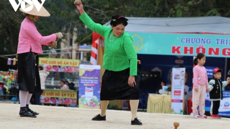 (VOVWORLD) - 北部山岳地帯の少数民族テイ族は春に伝統的な遊び「コマ回し」をする習慣があります。テイ族の言葉で「トゥクカン(Tuc Khang)」と呼ばれるコマ回しは男性のほか、多くの女性も好んで行います。