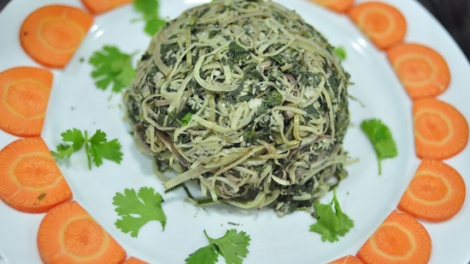 ムオン族の食文化は山や林の山菜を採り、その材料を使った簡素な料理です。代表的な料理は蒸し野菜、魚、豚肉などです。現在も、これらの料理はホアビン省のムオンビ地区に住むムオン族の日常、ひいては正月の料理となっています。