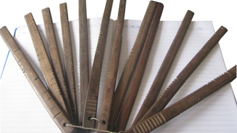 大昔、ムオン族の居住地ならどこでもドイ(Doi)というカレンダーが使われましたが、現在はホアビン省のムオンビ地区でしか使われていません。ド イは竹でできていて、ムオン族独特の暦です。ホアビン省、タンラク県、ムオンビ地区に住む祈祷師らはドイというカレンダーを保存、使用しています。