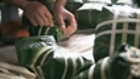 この数年、テトにあたり、ハノイ在住している日本や韓国、スイス、ドイツなどの各国の青年ボランティアは貧しい子供たちに贈るためにもち米や豆緑、バンチュンをチマキのような緒に作っています。