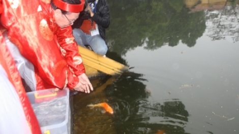 毎年旧暦の12月23日はベトナム人の信仰に基づき、カマドの神様が天にのぼって、その家の一年間の状況を報告する日となっています。今年は新暦の1月16日がこの日ですが、人々は、カマドの神様をまつるお供え物を買いに行きます。そのお供え物とは3匹の小ぶりの赤い鯉(こい)が欠かせません。