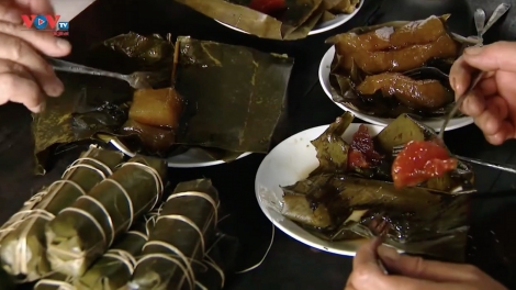(VOVWORLD) - 「ゾン」という葉に包まれ、琥珀色のような色をしたゼリー状の餅菓子「バインジョー」はベトナムの伝統的お菓子の一つです。お米と灰汁、塩と砂糖だけの簡単な食材で作られるこのお菓子はこの料理は味もよく見た目にも美しい一品です。