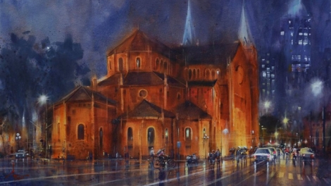 ドアン・クオックさん 水彩画でホーチミン市を描く