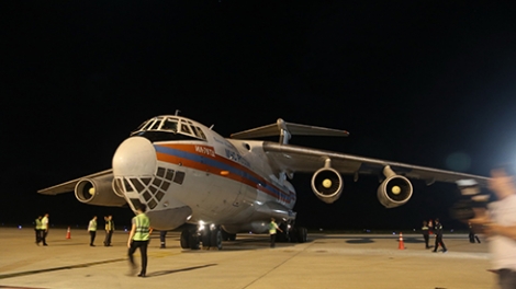(VOVWORLD) -8日夜、援助物資を運んだロシア民間防衛問題・非常事態・自然災害復旧省の大型ジェット輸送機がカムラン空港に到着しました。