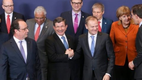 7日、ベルギーの首都ブリュッセルでEU=欧州連合28カ国とトルコの首脳らは会議を行い、欧州に難民や移民らが押し寄せている問題について協議しました。