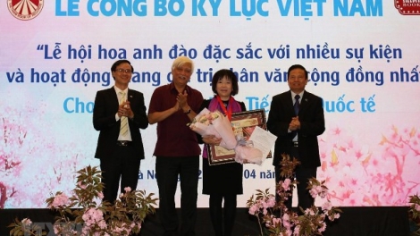 (VOVWORLD) - 23日、ハノイで、ベトナムで開催されてきた「桜祭り」が国家記録を確立したことに関する認定書の授与式が行われました。