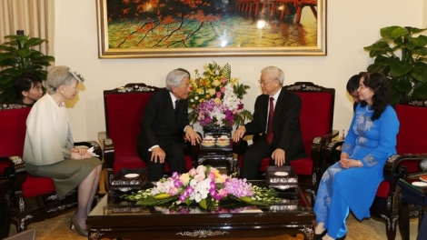 3日午後、ハノイで、グエン・フ・チョン共産党書記長夫妻はベトナムをご訪問中の天皇皇后両陛下と会見しました。席上、チョン書記長は天皇皇后両陛下のご訪問に喜びの意を表明するとともに、初めてのベトナムご訪問は両国関係の新たな発展を記すものとなると強調しました。