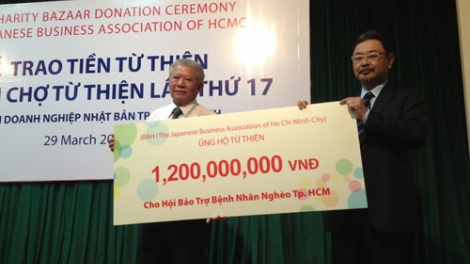 29日夜、ホーチミン市で、在ベトナム日本実業家協会はホーチミン市の貧しい患者保護協会に義捐金12億ベトナムドンを寄贈しました。