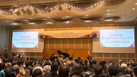 (VOVWORLD) - 28日午後、東京都内で、日越外交関係樹立50周年を記念する式典が開催されました。式典には、日本を訪問中のボー・バン・トゥオン国家主席夫妻、秋篠宮ご夫妻、額賀 福志郎衆議院議長が出席しました。