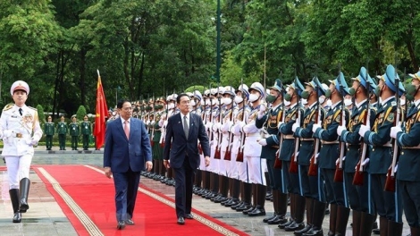 (VOVWORLD) - 5月1日午前、国家主席府で、ファム・ミン・チン首相の主宰の下、岸田文雄首相を歓迎する式典が盛大に行われました。歓迎式典の後、両首相による首脳会談が政府本部で開催されました。