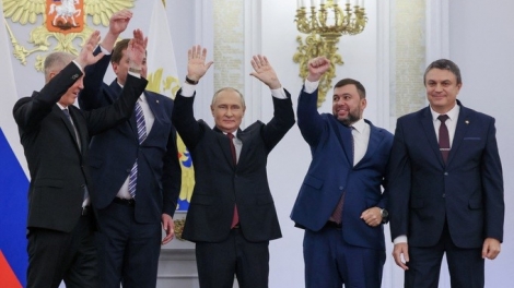 (VOVWORLD) - 9月30日、ロシアのプーチン大統領は、先の「住民投票」でロシアへの編入を圧倒的多数で支持したウクライナ東・南部のルガンスク、ドネツク、へルソン、ザポロジエ4州の併合を宣言し、4州の親ロシア派代表と併合条約に署名しました。