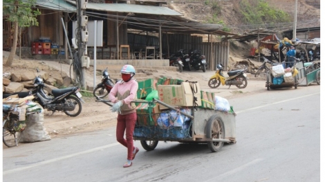リャカーを引く女性たちは少数民族パッコ族の人々ですが、毎日、ベトナム中部クアンチ省ラオバオ町のラオバオ国境検問所からラオスのサバナケット省のデンサバン検問所までリャカーで荷物を運ぶ仕事をしています。