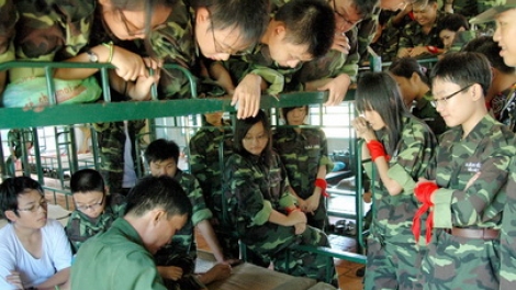 ベトナムでは、夏休みになると、多くの家庭は子どもに色々な学習をさせています。その中で、ここ数年、部隊生活の体験が生徒たちにとって有益な活動となっています。