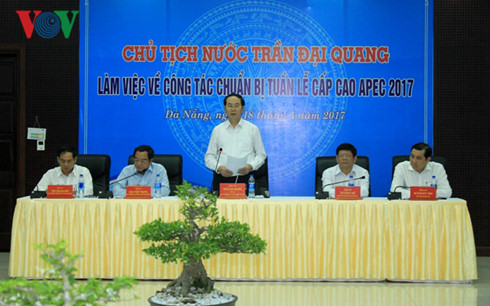 APEC 2017国家委員会、及び、ダナン市人民委員会と会合を行なった際、クアン国家主席は「APEC首脳会議の主催は新しい発展段階におけるベトナムの外交活動の重要な活動であり、ベトナムの党、政府の国際社会への主体的かつ積極的な参入政策を示すとともに、ベトナムが地域と世界の重要なパートナーと二国間・多国間関係を深化させるチャンスともなる」と強調しました。