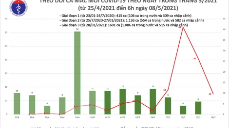 (VOVWORLD) - 保健省の8日午前の発表によりますと、5月7日18時~8日6時までベトナム国内で新たに15人の市中感染者が確認され、このうち、ハノイでは1人、北部バクニン省は14人でした。