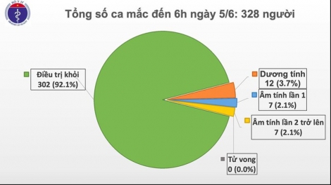 (VOVWORLD) - 時点で、感染者数は328人にとどまり、そのうち、302人は完治しました。 残りの26人は、基本的に健康状態が安定しており、国内各地の病院で治療を受けています。