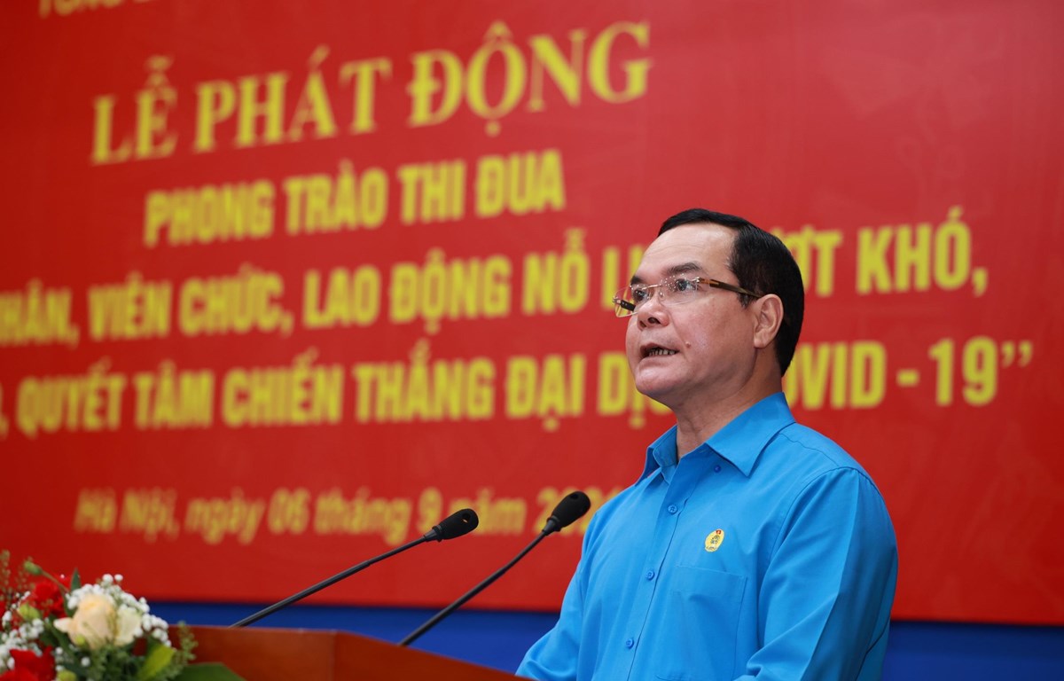 発動式で発言に立ったベトナム労働総連盟のグエン・ディン・カン議長は、全国の全ての幹部、労働組合員、労働者、公務員に対し、パンデミックを早期収束させ、生産活動を回復させるために愛国の伝統を発揮して、心を合わせて、困難を乗り越え、創意工夫を凝らして、労働に励むよう呼びかけました。