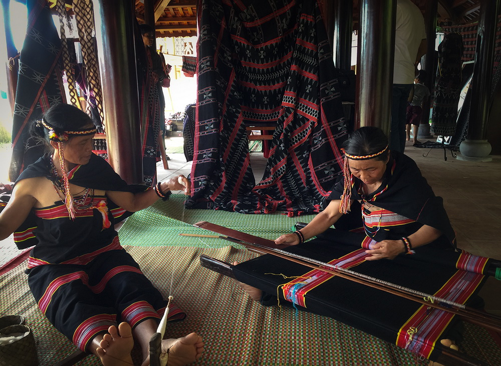 タオイ族の手織り物は、独特で、精巧な模様を持ち、タオイ族女性の器用な手先を示しています。以前、タオイ族の手織物は、黒と赤の2色だけでした。黒色は水、赤色は火のシンボルです。後に、手織り職人は、創意工夫を凝らして、白・黄・ピンク・青など様々な色の織物を出来上げるようになりました。手織り職人の器用な手先と創造性により、多くの独特な手織物が出荷されています。例えば、ネクタイ、バッグ、男性と女性向けのシャツ、アオザイ、帽子、履物など様々なものです。特に、従来と現代の模様を組み合わせて出来上がった手織物もあります。手織り職人の話です。