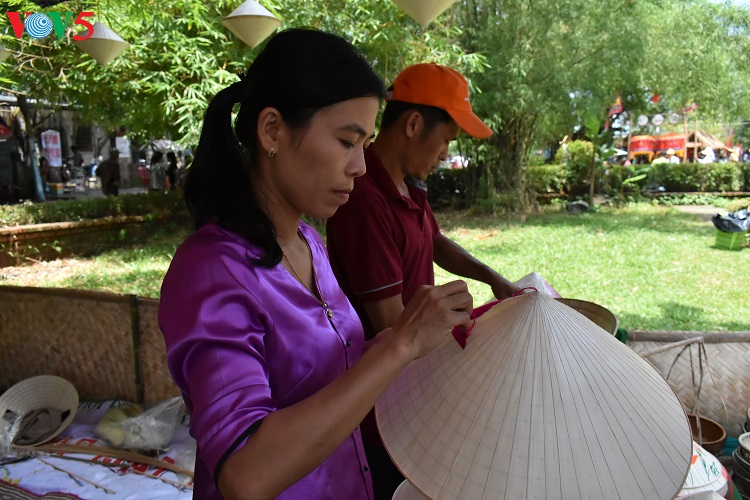 フォントウイ(Huong Thuy)町トイタン(Thuy Thanh)村にある三角菅笠『ノンラー(NonLa)』生産工房は、2017年のフエ伝統工芸フェスティバル、また2018年のフエフェスティバルに参加しました。この生産工房の展示ブースでは、来場者は女性職人の手先の器用さに目撃するだけでなく、菅笠の生産工程を体験