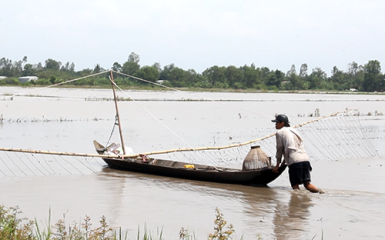 このように語ったナムさんによりますと、彼が住んでいる周辺の農地では、今年初めからの干ばつにより、農業生産への打撃が深刻となり、多くの農民が、ビンズオン省、または、ホーチミン市へ出稼ぎに出て、日雇いの仕事で生計を立てているということです。しかし、この半月、この地域にある運河の水位が上昇してきました。そこで、出稼ぎに行かないナムさんと数十人の住民だけが、魚介類の水揚げの仕事に転職しました。ナムさんは一日、およそ16キロの川のカニを捕っています。このカニを1キロにあたり1万4千ドン、約70円ほどで販売する為、家族の生活が保たれるようです。一方、ドンタップ省タムノン町に住むファム・キム・チさんは「川の水位は9月頃に上昇した。前よりちょっと遅いけど、ないよりもあった方がよい。漁獲で生計を立てる住民はとても喜んでいた」と明らかにし、次のように語りました。