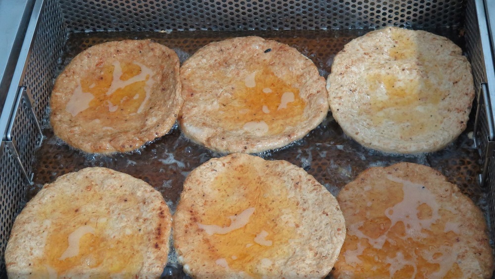 ベトナムの一般的な「チャーカ」とは、材料が海魚でも川魚でも良いですが、小魚の場合、頭と内臓を取り除いて、骨や皮をつけた魚、大きな魚の場合は頭、内臓、骨、皮を取り除いた魚肉だけを肉挽機にかけ、 みじん切りの唐辛子、玉ネギ、コショウ、調味料と一緒にすりつぶし、直径5センチ、厚さ1センチの丸型をしてから、表面がきつね色まで油で揚げたものです。しかし、リーソン島の