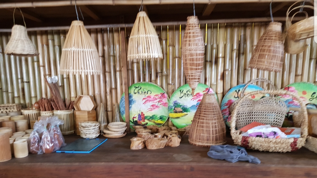 「私たちは、南部の農民、漁民にとって馴染んだ品物であるザル、カゴ、漁獲用具などのミニチュア製品を観光土産として作っています。竹細工の小物は巧みに作られているので、人気があり、高い価格で販売されています」