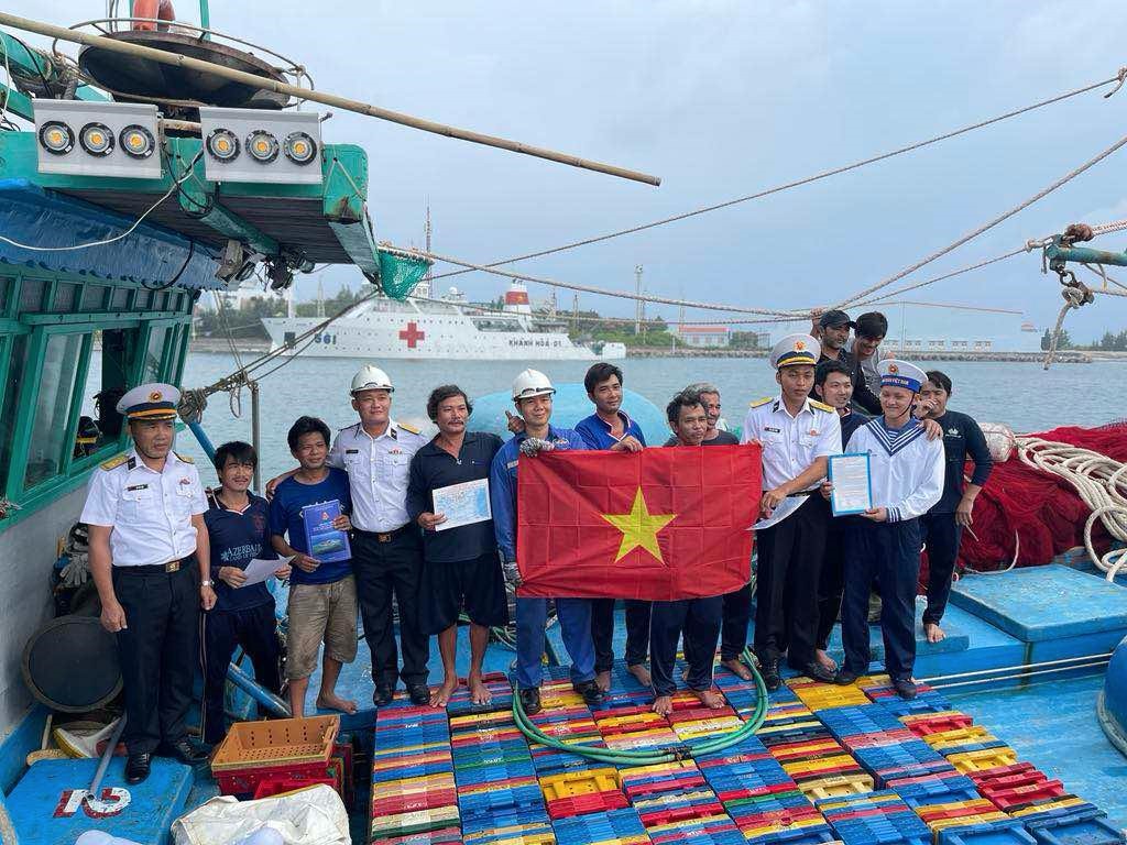 漁民の船舶が損傷した場合、農業環境省所属漁業後方支援サービスセンター、および島々の軍民が協力して、船舶を無料で修理するために曳航し、本土価格で食料、飲料水、燃料などを提供します。それだけでなく、島々の部隊は、IUU=違法・無報告・無規制漁業対策についても漁民に啓発活動を行っています。