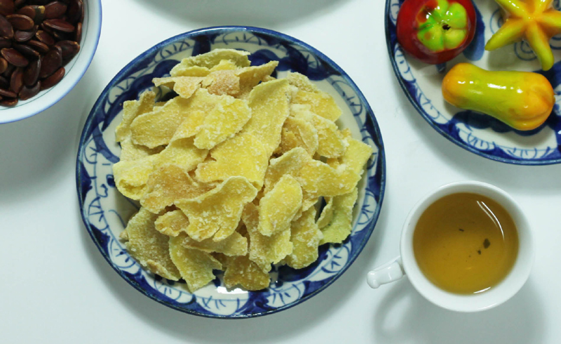 「生姜の砂糖まぶしはフエの特産物です。フエの生姜は他の地方より美味しいし、香りもいいのです。テトに生姜の砂糖まぶしを食べながら、お茶を飲むのは最高です。ピリッと辛いながらも、甘い生姜の砂糖まぶしはお茶の友として、フエの気候にも合いますよ。」