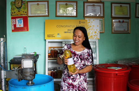 「当初、経験と見識不足のため、何回も失敗しましたよ。でも、もし成功すれば、社会問題解決に役立つと思っていたので、床掃除用洗剤の生産について様々な資料を研究したり、実験を行うことにしました。床掃除用洗剤を成功させた後、ハンドソープ、洗濯用洗剤を作れるようになりました。環境保護と健康増進のために、他の女性たちにもこうした方法をやって欲しいです。」