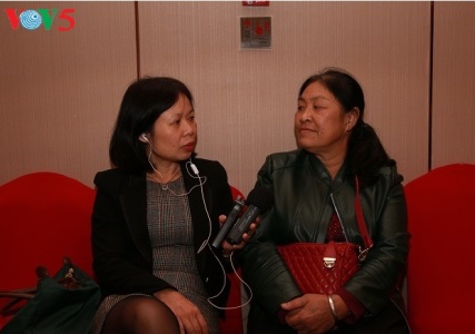 一方、イベントには南寧市から約200キロ離れた所からやってきたドゥ・テイ・ベー(56才)さんとグェン・ティ・ハー(52才)さんがいます。この2人の女性が中国の南寧市駐在ベトナム領事館の主宰による「共同体のテト」イベントに参加するのは今回が初めてです。今回のイベントで公演されたベトナムの歌を聞いて、故郷への懐かしさが強くなっています。ベーさんの話です。