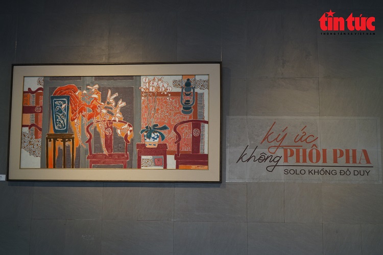 画家コン・ドー・ズイさんの絵画展「色褪せない記憶」で展示された作品はいずれも、現代性を少し加味したノスタルジックな長編の物語を連想させます。これらの作品は、古い空間を描きながらも、あざやかな色で活気に満ち、賑やかでポジティブな雰囲気を醸し出すのが、これらの作品に共通する特徴です。