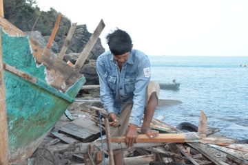 20年余りにホンチュオイ島に住んでいるチャン・バン・ザウさんは古い小型船を修理しながら、自分の家庭の生活について話してくれました。彼に話によりますと、ホンチュオイ島で生活を始める時は、ジャックフルーツやマンゴーなど果樹の栽培をしました。しかし、収穫後の果物は売り物になりませんでした。その後、ザウさんの家庭は海の近くに引っ越して、海での漁獲に従事してきました。ホンチュオイ島でスギの養殖を成功させた人がいるという情報を聞き、長年にわたって貯めてきた全財産でスギ養殖をすることにしました。
