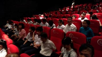 ある土曜日の朝のこと。ホーチミン市第1区のグェン・チャイ通りにあるシネスター映画館の雰囲気は普通と同じように賑わっていました。しかし、違うのは、鑑賞者の中にはグェン・ディン・チュエウ盲学校からの200人の生徒がいたのです。