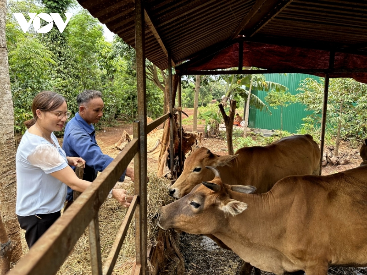 イ・ヘン・ニエさんの家庭は、以前、生活費と3人の子どもの学費は、彼の雇われ仕事の収入によって賄われていたため、とても大変でした。2017年に、地元の行政当局から支援金を受けて、新しい家を建設しました。1年後、エアドロン村祖国戦線委員会は、「お金を貯金箱に貯める」基金を利用して、6百万ドン、約3万円をヘン・ニエさん一家に繁殖用牛の購入の補助金として提供しました。6年後の現在、ヘン・ニエさん一家の牛は5頭に増えました。昨年末、彼の家族は貧困世帯から脱出し、安定した生活を送れるようになりました。