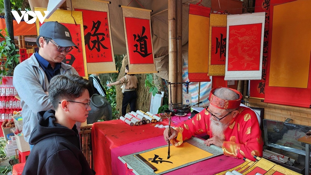 新年に『書』をお願いする風習は、ベトナム人の向学心や『尊師重道』という伝統、および民族文化の美しさと良き伝統をも示しています。赤い紙の上に中国の墨で書かれた対句と祝福の句は、初春の願いを表す意味のある精神的な贈り物となっています。