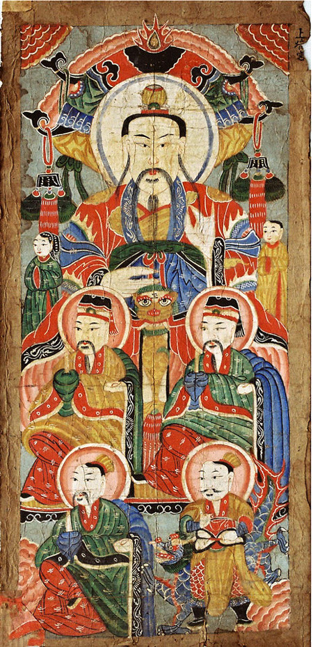 ソン 道教や民間信仰で最高神、最高の神とされている玉皇上帝(ぎょくこうじょうてい)を招くためには、天国のような世界を描かなければなりません。仏様を祀るためには、仏教の世界を描く絵が重要です。水中の世界には竜の神様、というようにです。