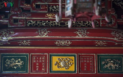 「他の国では建造物の装飾には、横額という横に長いフレームを使ったり、対句、これは2枚の板に書かれてあるので、ほかの場所に持ち運びができます。詩や文を装飾として使うのも少ないと思います。フエでは、建物を詩文で飾る割合が多く、室内室外問わずどこにでもあります。グエン朝の皇帝が詩文で国を支配したような感じがします。」