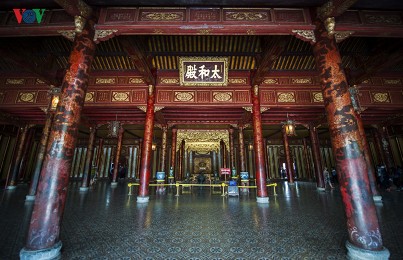 ソン 太和殿はグエン朝の歴代皇帝の即位式が行なわれた建物です。太和殿に見られる詩は、国の領有権をうたったり、平和への願いを表現したものが多くなっています。