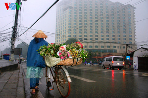 ソン 卸し売りの時間が終わって日が昇った後、クアンバー市場から人が減っていきます。市場で仕入れられた花は花屋へ運ばれたり、自転車や天秤棒で街を回る花売りの女性に売られます。