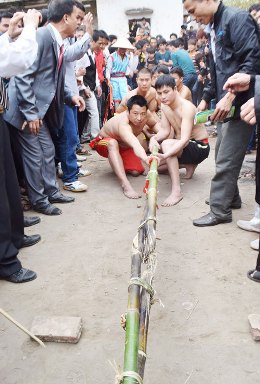 ソン はい。綱引きは普通、一本の綱を使いますよね。ハノイ郊外のある地域では、綱ではなくて、一本の竹を使います。