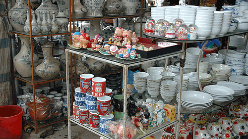 フン そうですね。今では 有名なハノイ市のバッチャン村で陶器が盛んに作られるようになるのは15世紀ころの話です。バッチャンはもともとタインホア省に住んでいた職人が移住してきたのが 始まりで、李朝時代から陶器をつくり始め、15世紀に入って栄えたそうですよ。そのころ染付けと言う技法が盛んに作られるようになり、赤や緑の線でデザインされた赤絵と呼ばれるものが海外へたくさん輸出されました。
