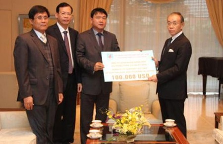 ベトロベトナム社はベトナム駐在日本大使館に義捐金を引き渡した
