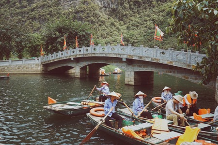 数年前、ニンビン省がアメリカのレジェンダリー・ピクチャーズとワーナー・ブラザースが共同制作した「コング:スカル・アイランド」のロケ地となりました。そのため、船で洞窟を見学してから、観光客はこの映画のロケ地を再現する施設を訪れ、映画に登場した地元の人々により出迎えられます。
