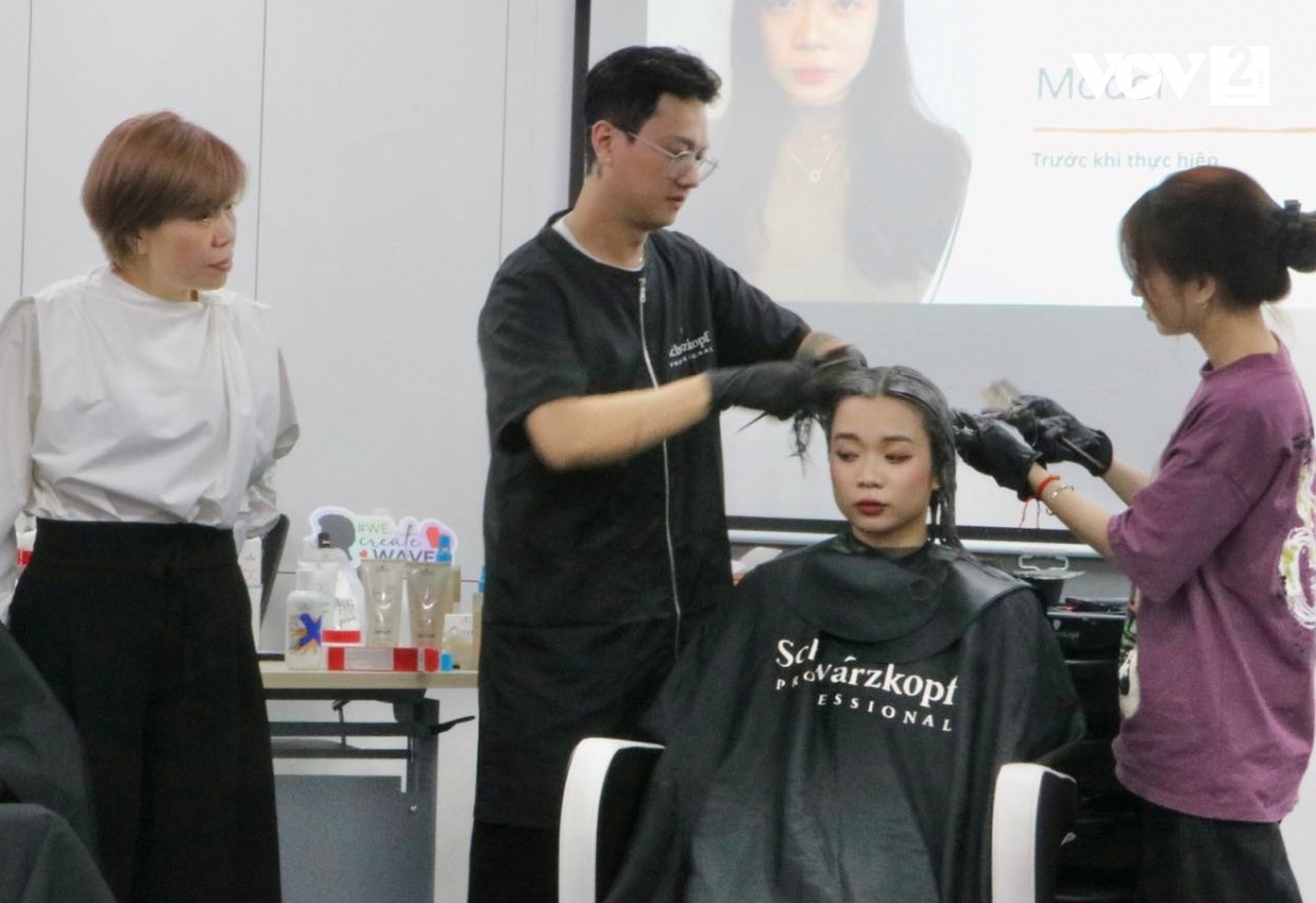 30年以上の理髪経験から、職業訓練の大切さを身にしみてわかっていたランさん。ディエンビエン省、ライチャウ省、トゥエンクアン省の成人教育センターの先生方と連携し、ムオン族、テイ族、ジャイ族、タイ族など山岳少数民族の貧しい家庭出身の若者を説得、ハノイに招きました。中学や高校卒業生が多いです。