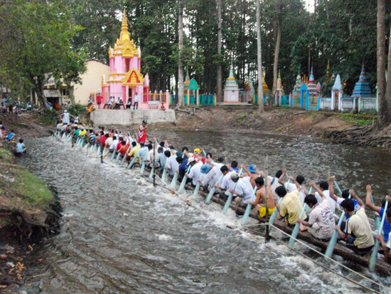 「昔から、クメール族の人々の生活にとって スポーツ活動は重要な役割を果たしています。みんなは様々なスポーツをやっていますが、一番人気があるのはボートレースです。レースで優勝したチームは賞金をお寺に寄付します。ですから、ボートレースに参加するのは精神的な糧を求めることでもあるあると思います」