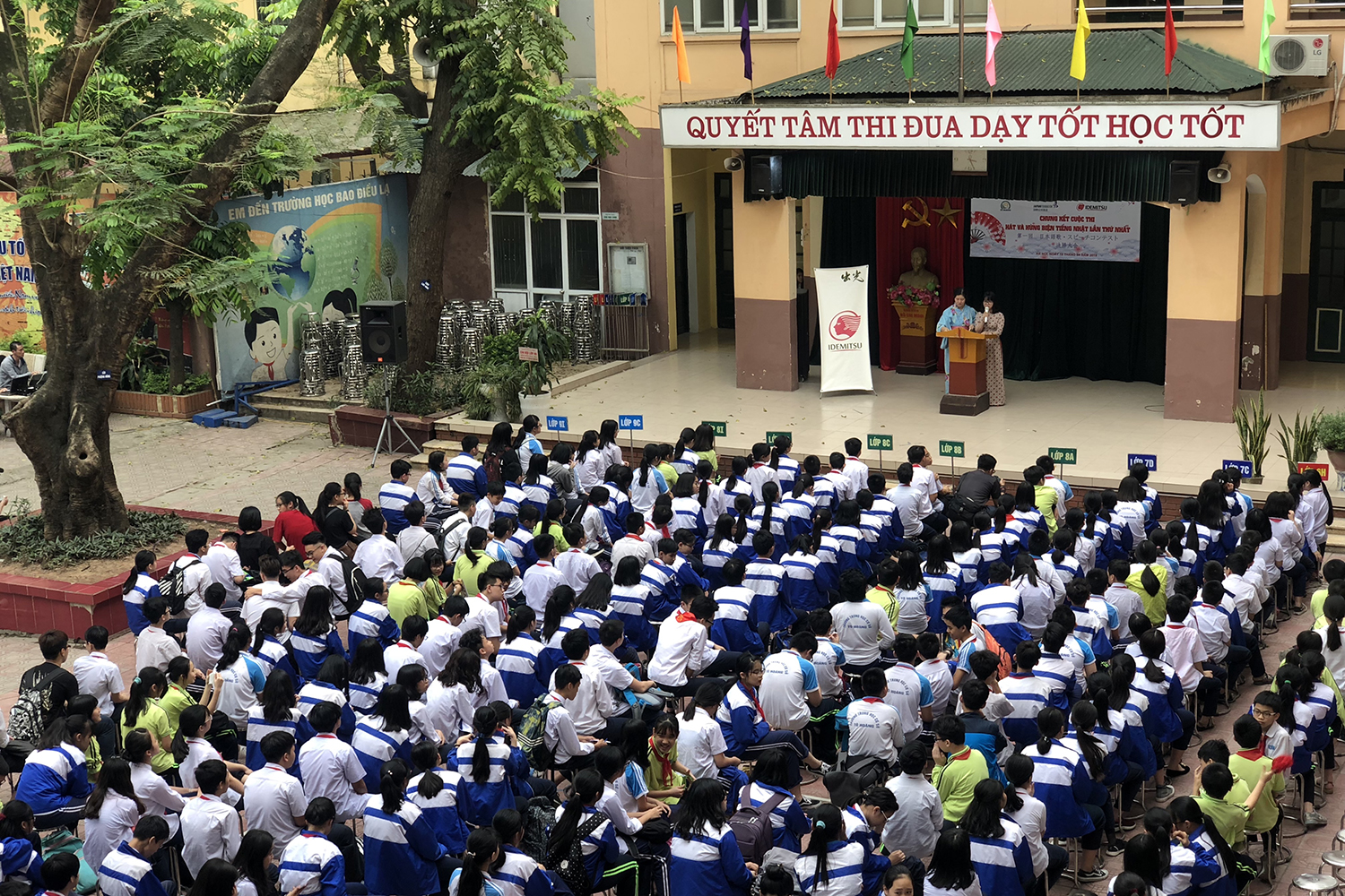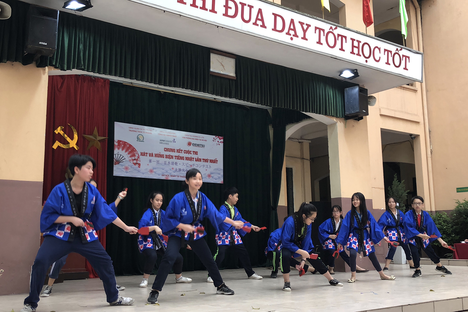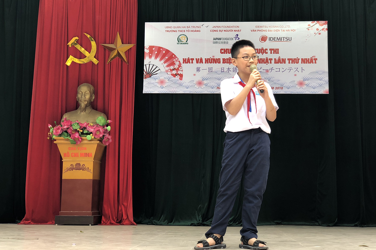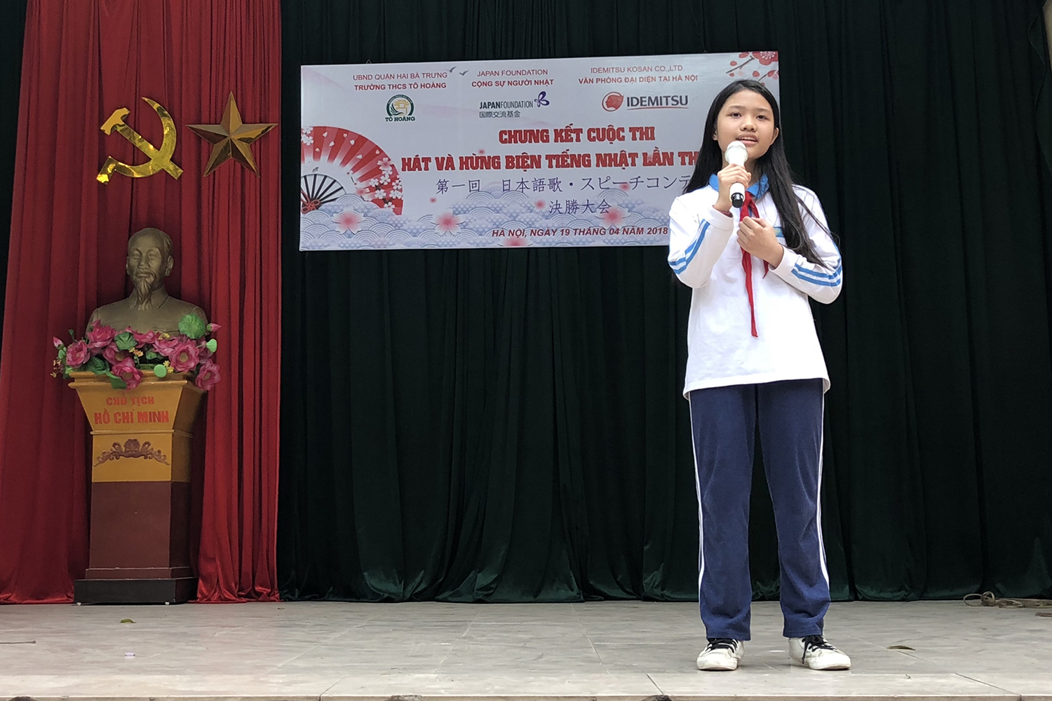 ハー おかげさまで。スピーチコンテストに参加したことはいい勉強になりました。大規模なスピーチコンテストのほか、多くの日本語教育施設でもスピーチコンテストを行っていますね。その中で、先月の19日、ハノイ市内トホアン(To Hoang)中学校は日本国際交流基金及び出光興産の支援を受けて第1回日本の歌・スピーチコンテストを行いました。今日のハノイ便りはその日本の歌・スピーチコンテストについてお伝えします。