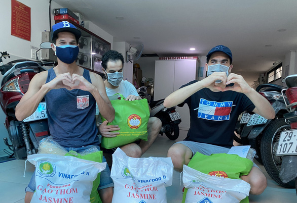 食料品を受け取ったフーニュアン区在住中の外国人(写真:Tuoitre.vn) |