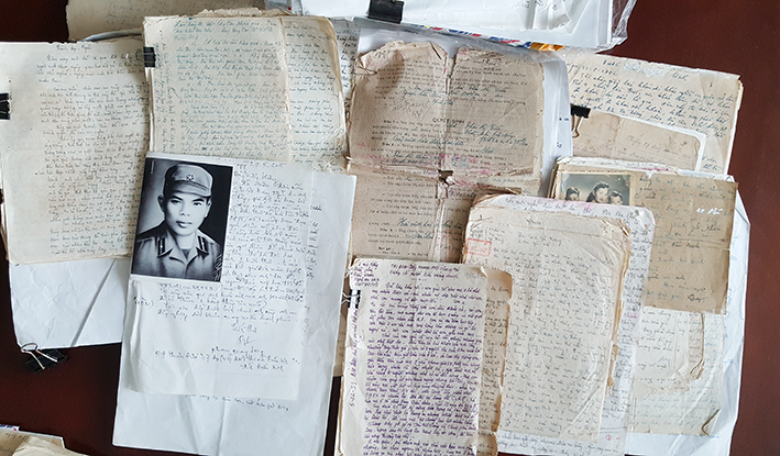 「戦時下に書かれた手紙は今とかなり違います。これらの手紙の紙は様々な種類で、万年筆とかボールペンなどで書かれました。当時、戦争時代ですから、ベトナムは何かも不足していたのです。その時、手紙は主要な連絡手段でした。後方から戦場へ送る手紙は個人と個人との気持ちを表すものでしたが、戦争中は、これらの手紙は共通のものとなってきました。そのため、戦場からの手紙を受け取った時、一個人や一家族だけでなく、隣近所の多くの人々が一緒に読める場合がたくさんありました。逆に、戦場にいる兵士が夫や恋人からの手紙を受け取った時、戦友たちも読めた場合もありました」